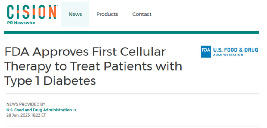 近期,我推送過《FDA批準:細胞療法用于治療1型糖尿病患者》一文,介紹美國時間6月28日,CellTrans公司研發的細胞治療藥物Lantidra成功獲得美國食品藥物監督管理局(FDA)的批準,成為首款基于供體來源胰島細胞的同種異體細胞療法。