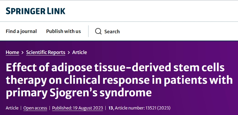 參考資料:Li, F., Lu, J., Shi, X. et al. Effect of adipose tissue-derived stem cells therapy on clinical response in patients with primary Sjogren’s syndrome. Sci Rep 13, 13521 (2023). https://doi.org/10.1038/s41598-023-40802-5