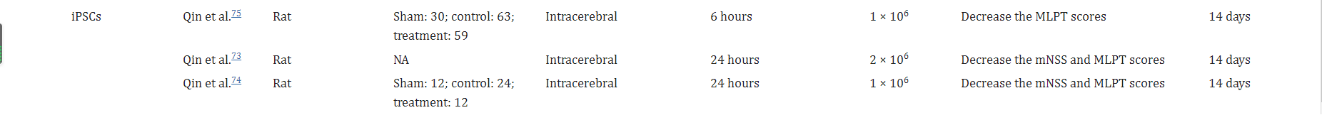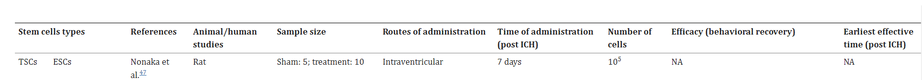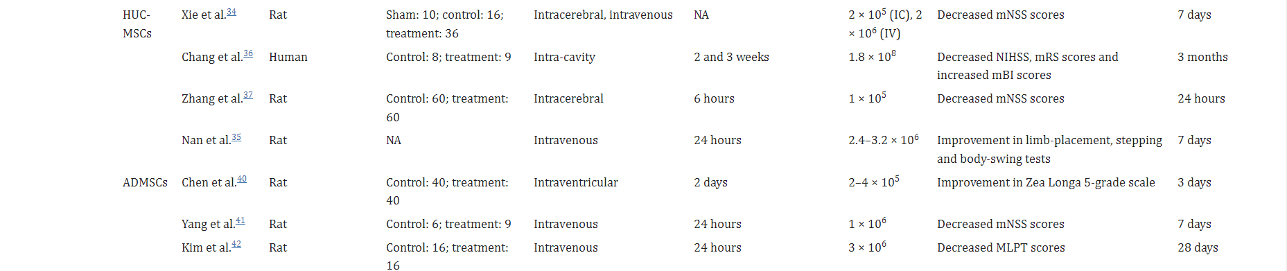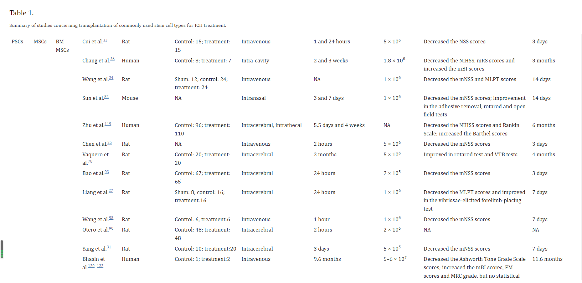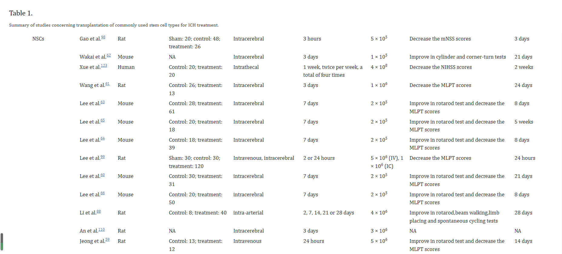 事實上,不同的細胞類型和不同的遞送途徑會影響SCs到達目標和工作的方式,這將導致不同的結(jié)論,因此這些研究沒有可比性。需要更具體的實驗,重點關注ICH的SC交付時間窗口。