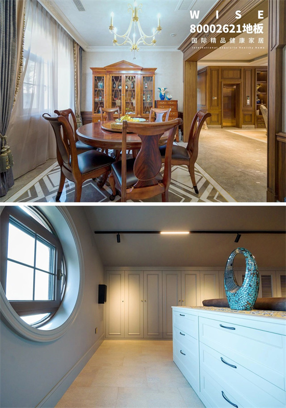 DIS5622地板以原木色做底、咖色鮮明木紋點(diǎn)綴,天然實(shí)木的花色紋理,呈現(xiàn)自然韻律之美,傳遞內(nèi)斂的奢華。人字拼通鋪加強(qiáng)空間立體感、具有視覺拉伸的效果,規(guī)則的線條層次讓家高級(jí)又時(shí)尚。?