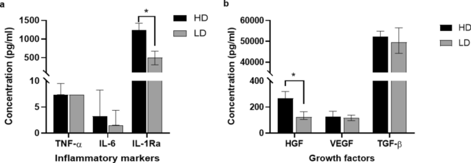 此外,生長因子HGF和VEGF顯著下降,而TGF-β水平升高。