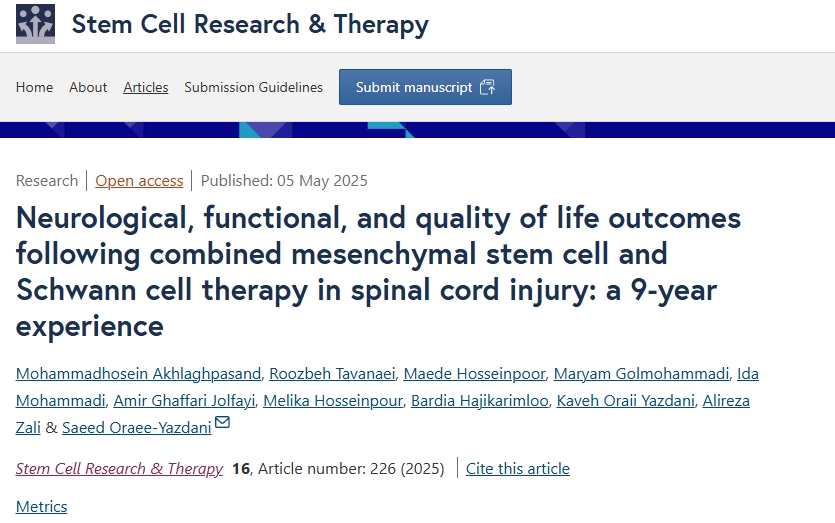 主要參考資料:[1]Akhlaghpasand, M., Tavanaei, R., Hosseinpoor, M. et al. Neurological, functional, and quality of life outcomes following combined mesenchymal stem cell and Schwann cell therapy in spinal cord injury: a 9-year experience. Stem Cell Res Ther 16, 226 (2025). https://doi.org/10.1186/s13287-025-04312-7