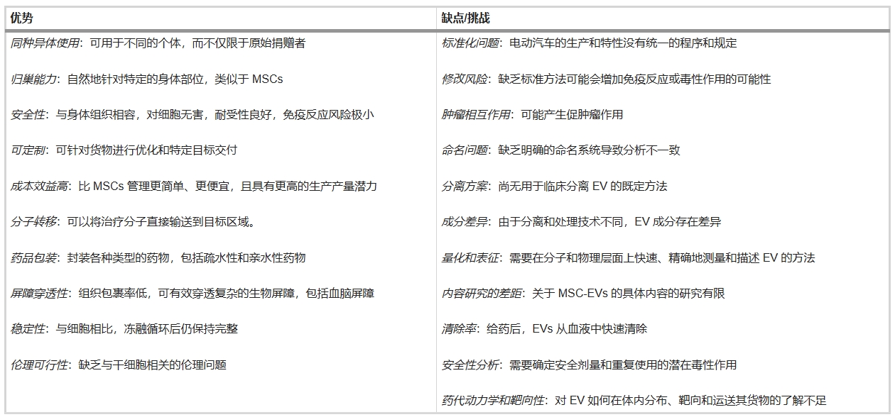 相較于MSCs,MSC來源EVs(MSC-EVs) 具備革命性優勢: