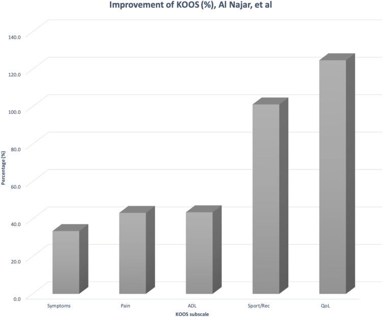 KOOS:比較了不同劑量和頻率的間充質干細胞治療下每個子量表的KOOS評分改善情況圖1–3。