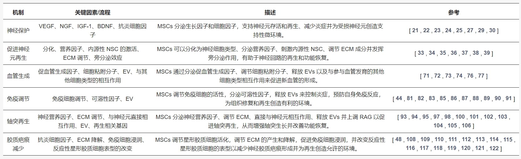 總之,間充質干細胞通過各種機制在促進神經元再生方面發揮了重要作用(表1)。