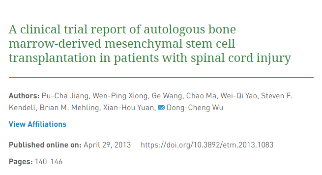 一項研究報告稱,自體間充質干細胞移植后運動和感覺功能顯著改善