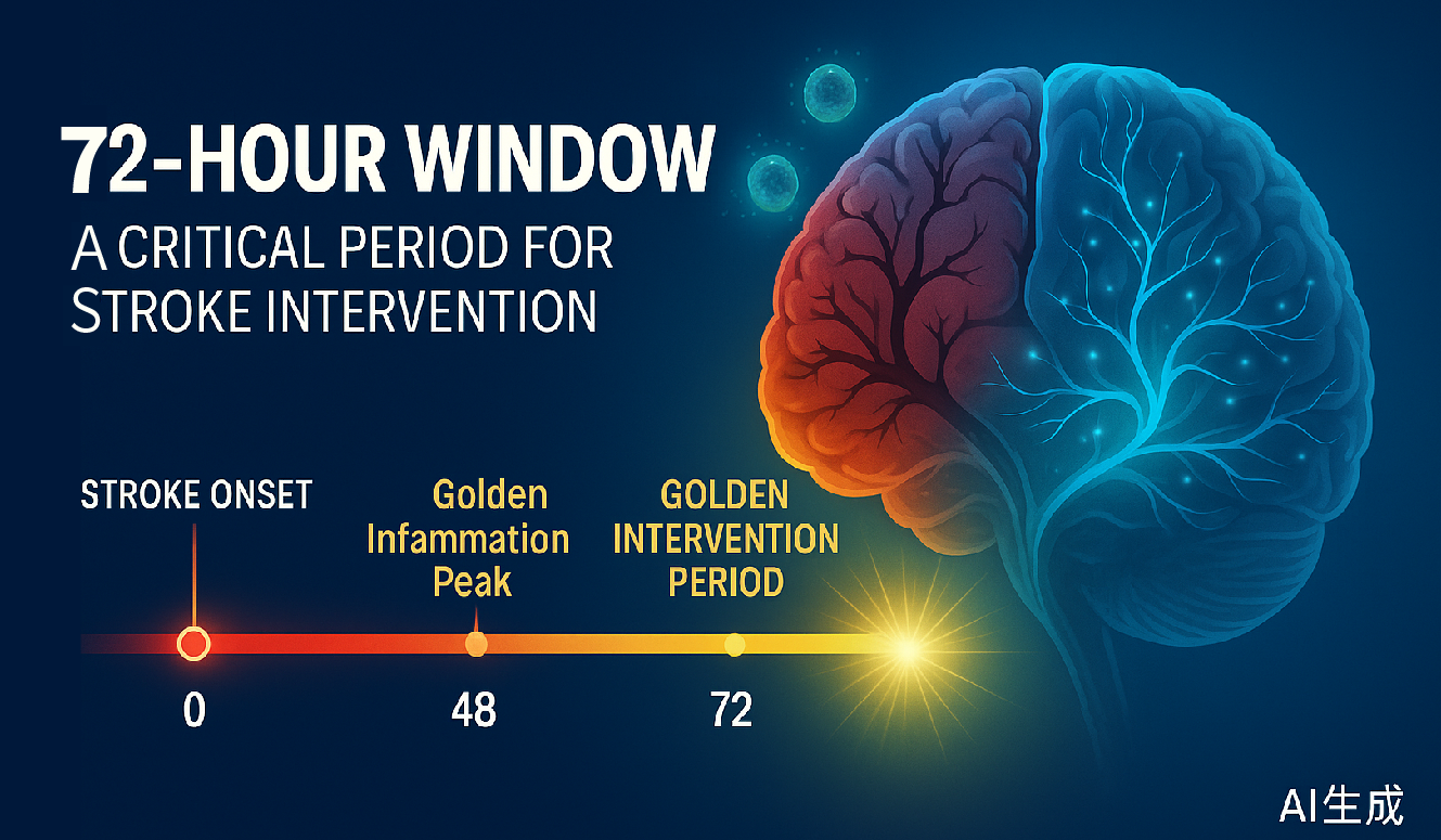將治療時(shí)間窗設(shè)定在72小時(shí)內(nèi),是因?yàn)樽渲屑毙云谕ǔ3掷m(xù)約72小時(shí),該階段炎癥與組織損傷反應(yīng)最為劇烈,此時(shí)予以干預(yù),有望最大限度地保留腦功能。這一安排既不影響常規(guī)急診救治,也為干細(xì)胞治療創(chuàng)造了最佳介入時(shí)機(jī)。