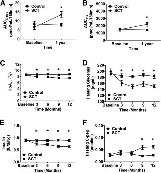 與基線和對照組相比,我們觀察到HbA1c、FBG和胰島素需求有所減少。雖然C肽的絕對變化很小,但考慮到研究患者的長期患病時間,這一變化相對顯著,其中許多患者的空腹C肽水平為零或幾乎檢測不到。