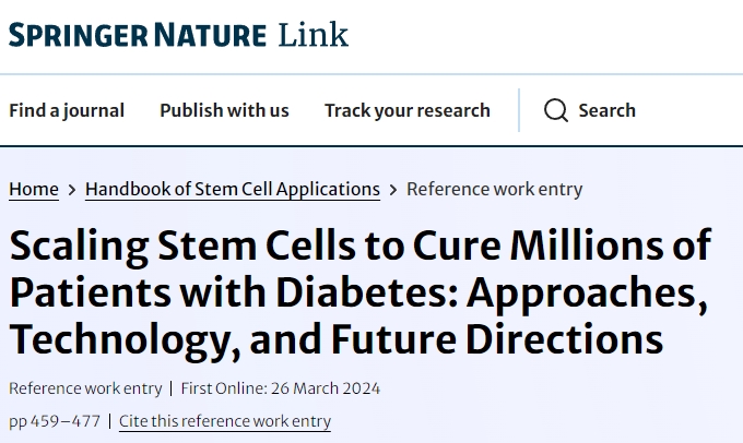 參考資料:Verhoeff, K., Shapiro, A.M.J. (2024). Scaling Stem Cells to Cure Millions of Patients with Diabetes: Approaches, Technology, and Future Directions. In: Haider, K.H. (eds) Handbook of Stem Cell Applications. Springer, Singapore. https://doi.org/10.1007/978-981-99-7119-0_18