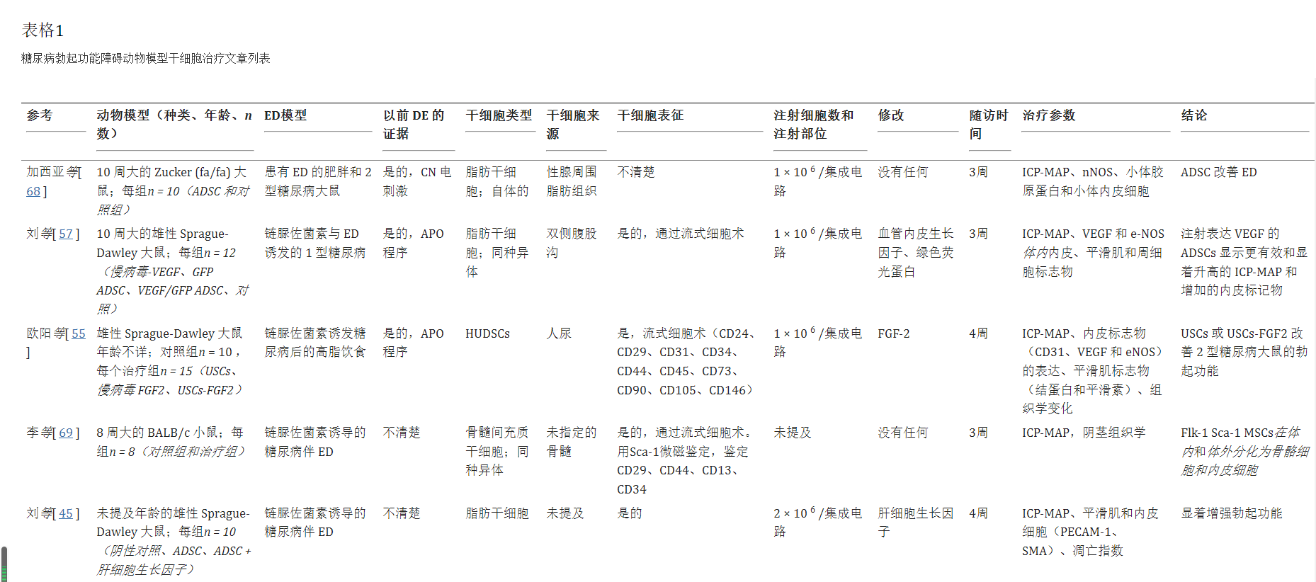 干細(xì)胞治療糖尿病勃起功能障礙的研究進(jìn)展