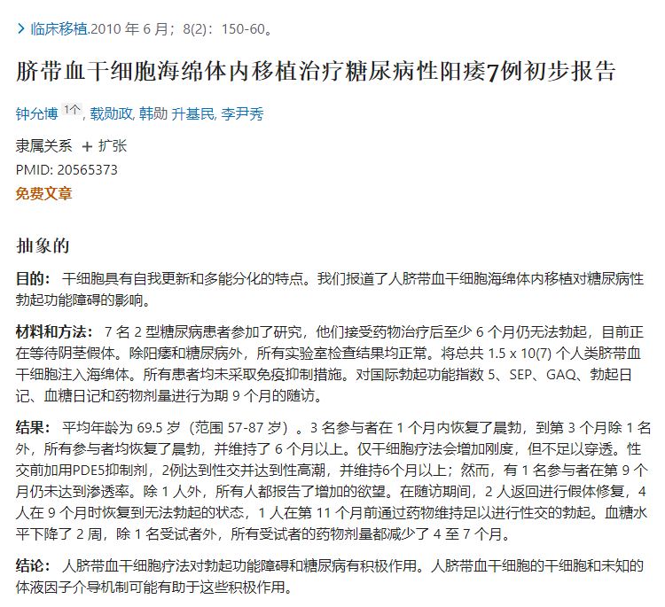 到目前為止,只有四項(xiàng)研究關(guān)注人類ED的干細(xì)胞療法。