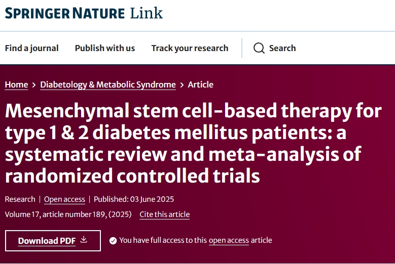主要參考資料:[1]Kashbour, M., Abdelmalik, A., Yassin, M.N.A. et al. Mesenchymal stem cell-based therapy for type 1 & 2 diabetes mellitus patients: a systematic review and meta-analysis of randomized controlled trials. Diabetol Metab Syndr 17, 189 (2025). https://doi.org/10.1186/s13098-025-01619-6
