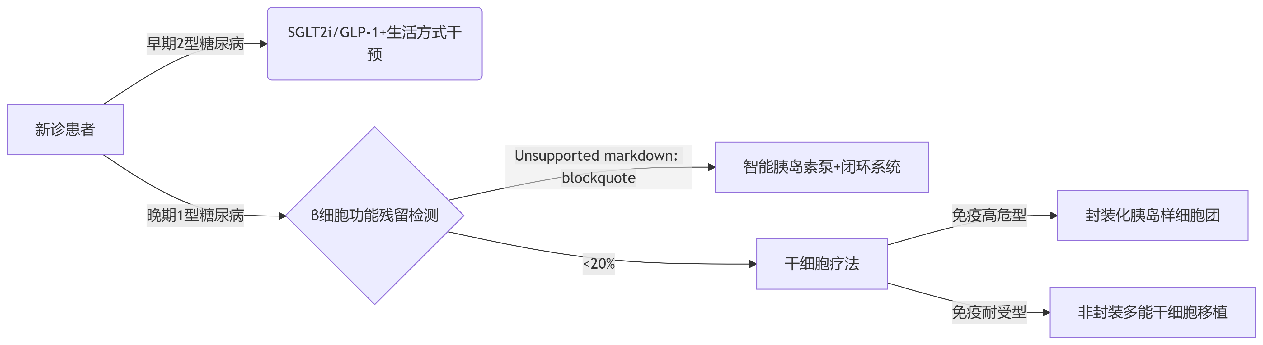 | 干細(xì)胞療法 | 分化干細(xì)胞為功能性β細(xì)胞或調(diào)節(jié)免疫 | 重建胰腺功能,實現(xiàn)血糖自主調(diào)節(jié) | 臨床研究階段(II/III期) |