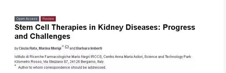 [5]Rota, C.; Morigi, M.; Imberti, B. Stem Cell Therapies in Kidney Diseases: Progress and Challenges.?Int. J. Mol. Sci.?2019,?20, 2790. https://doi.org/10.3390/ijms20112790