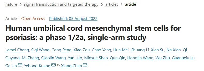 干細胞療法作為難治性牛皮癬的可行替代療法的發現是偶然的。伊迪等人描述了一名35歲的男子從未受影響的兄弟那里接受了同種異體HSC來治療急性粒單核細胞白血病,并治愈了嚴重的頑固性牛皮癬。移植五年后,接受者的牛皮癬仍未消失。同種異體造血干細胞移植治療銀屑病的有效性機制仍不清楚。手術所需的免疫抑制藥物和免疫消融被認為會減少自身反應性T細胞的數量。使用來自未患有牛皮癬的捐贈者的潛在非反應性T細胞群來重建免疫系統。據報道,接受同種異體HSCT而不是自體HSCT的患者銀屑病得到持久緩解(長達20年)。去年,中南大學湘雅醫院在NATURE子刊《signal transduction and targeted therapy》發表干細胞治療銀屑病最新臨床研究結果。該臨床試驗經過國家衛健委批準,在clinicaltrials的臨床注冊號為NCT03765957。