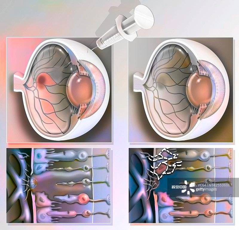輸送細胞的另一種方式是將細胞懸浮液注射到視網膜下的眼睛中。來自 iPS 細胞、人類胚胎干細胞或 RPE 干細胞的細胞在實驗室中生長并分化為 RPE,然后置于液體中并注射。這種方法可能侵入性較小。