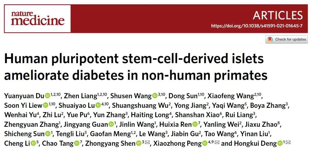 作為國(guó)際首個(gè)在非人靈長(zhǎng)類模型上系統(tǒng)地評(píng)價(jià)人多能干細(xì)胞來源的胰島細(xì)胞治療糖尿病可行性的研究,本研究在非人靈長(zhǎng)類動(dòng)物模型上證明了人多能干細(xì)胞分化的胰島細(xì)胞在糖尿病治療中的安全性和有效性。