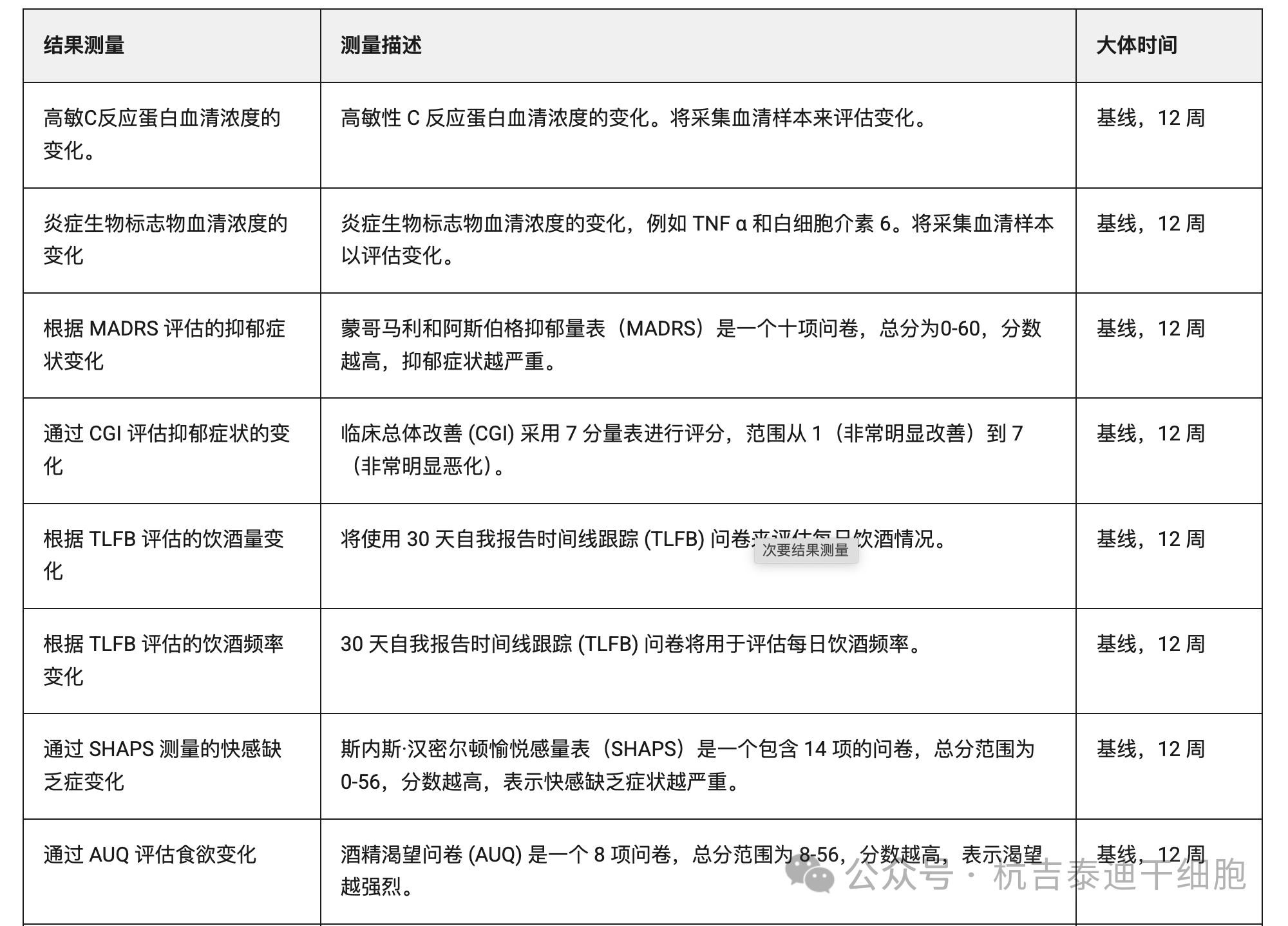 正式名稱:一項 I/II 期、前瞻性、隨機、雙盲、試驗對照試驗,旨在評估同種異體人類間充質干細胞輸注與安慰劑對酒精使用障礙和重度抑郁癥患者的療效。