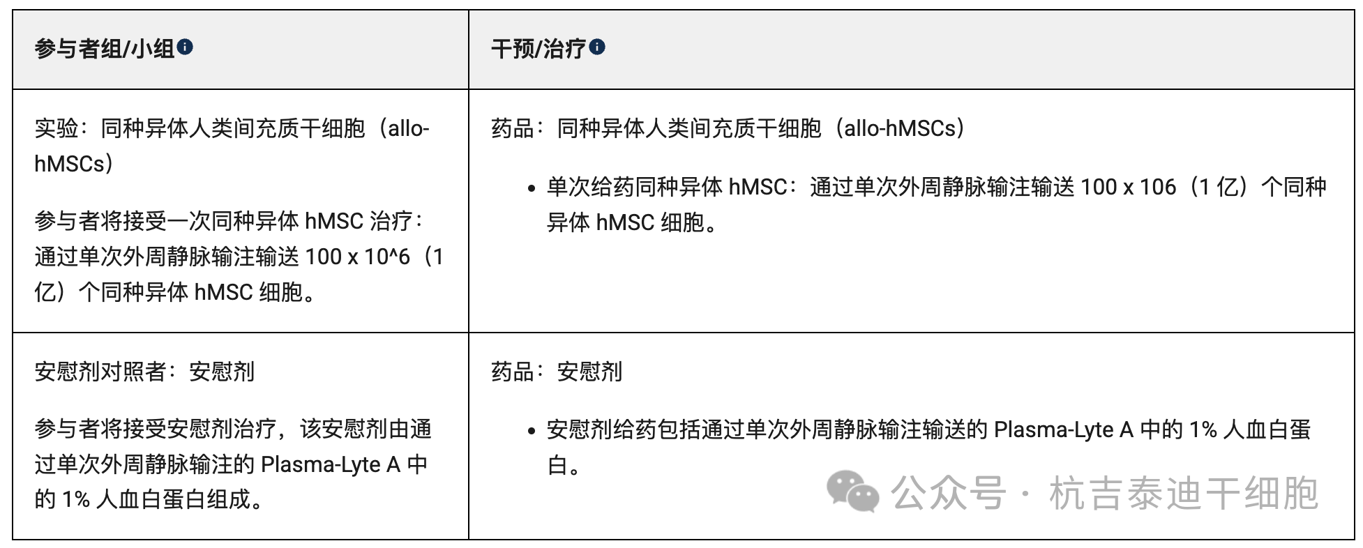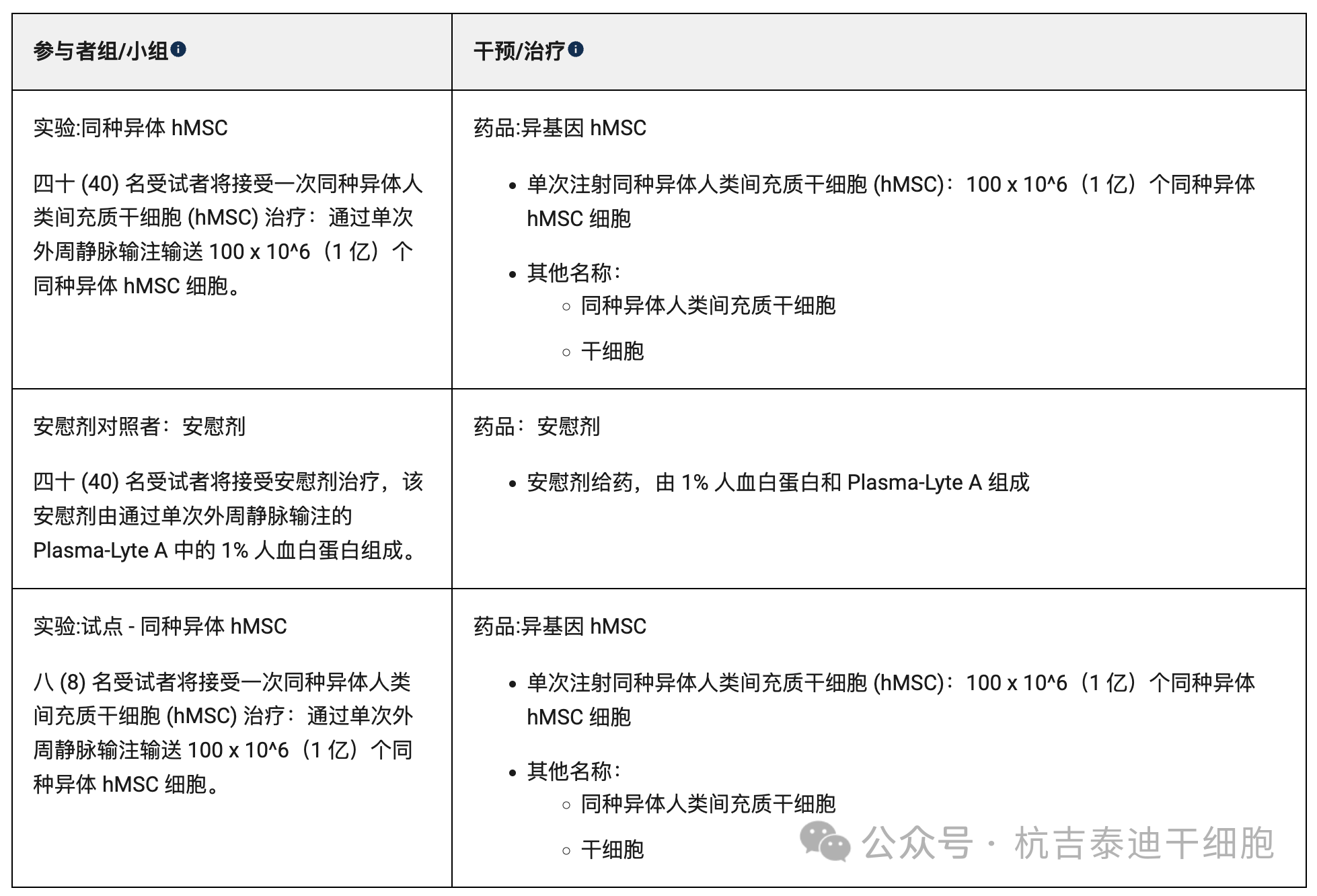 40名患者將以1:1盲法接受單次同種異體hMSCs治療,另外40名患者將接受單次安慰劑治療。
