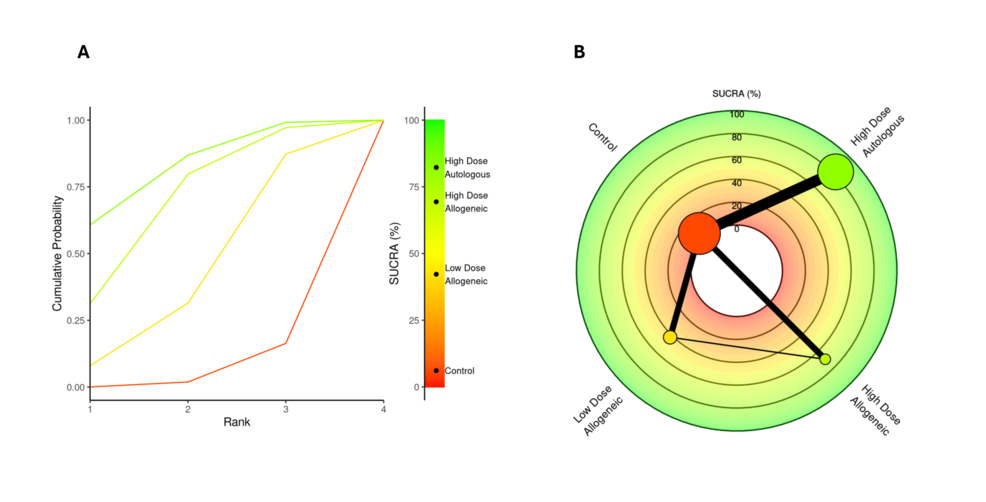 SUCRA 排名:高劑量異基因AD-MSCs略優(yōu),自體組緊隨其后