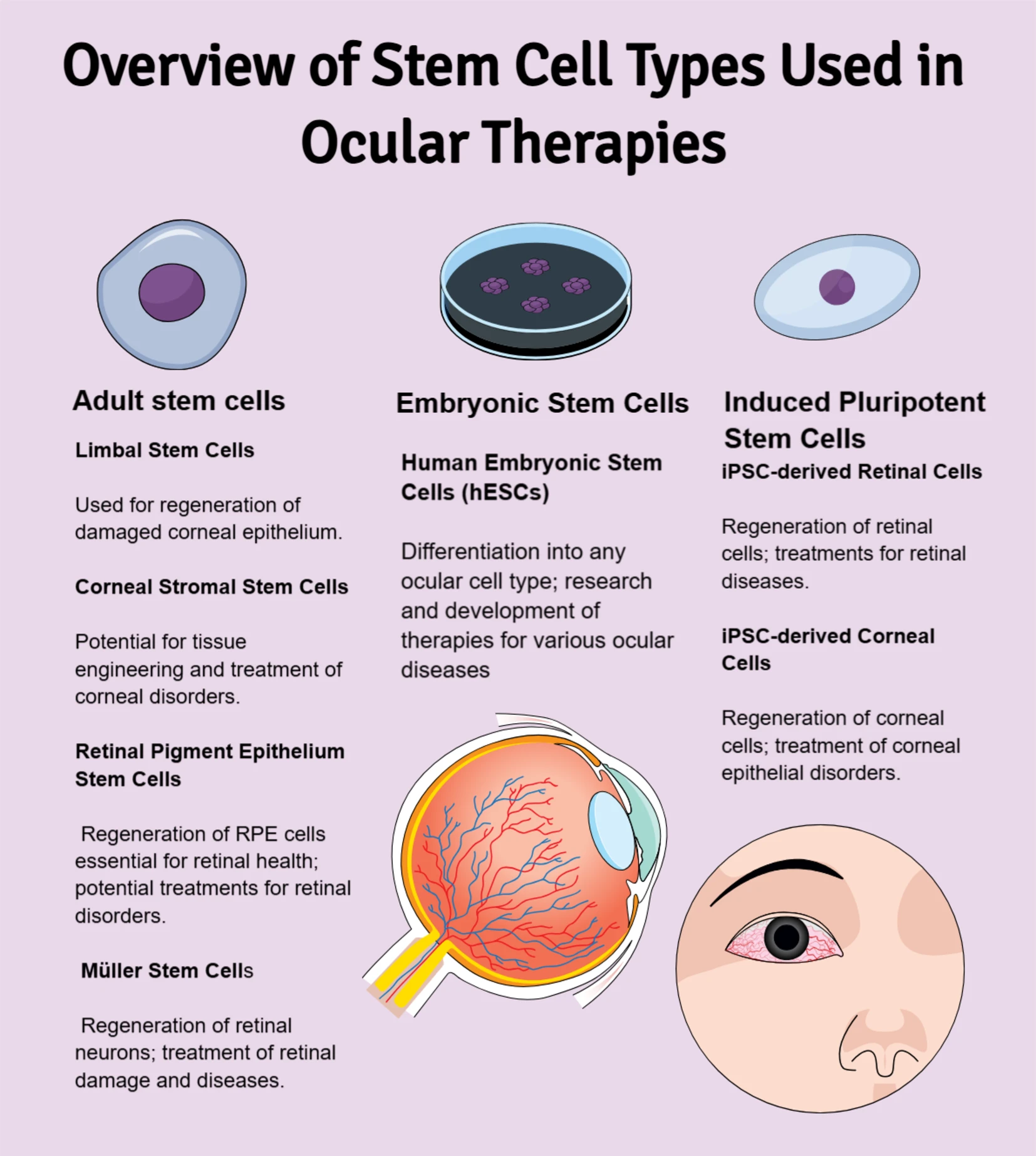 多項臨床試驗已經探討了干細胞療法治療不同眼部疾病的機會和風險,結果顯示前景光明但結果不一。