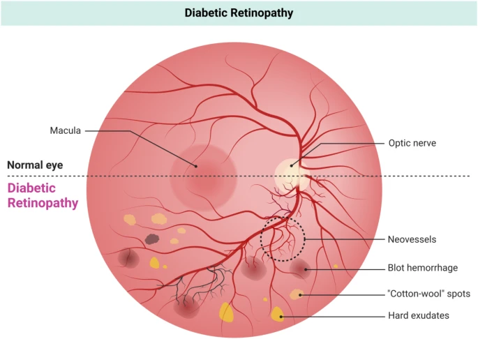糖尿病患者視力受損的一個重要原因是糖尿病視網膜病變 (DR),其原因是持續的高血糖水平損害了視網膜中的血管。該病的發展經歷兩個主要階段:非增生性和增生性。增生性階段的特點是異常血管的生長以及視網膜脫離和出血風險的增加。目前的治療方案包括激光手術、抗VEGF注射和皮質類固醇治療,但主要側重于控制癥狀,而不是解決疾病的根本原因。這些干預措施并未針對DR的根本機制。