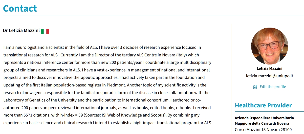 其他團隊,例如意大利東皮埃蒙特大學的神經學家Letizia Mazzini的團隊,也在推進干細胞治療肌萎縮側索硬化癥的研究。她的團隊正在準備一項胎兒神經細胞移植的2期試驗,該試驗以多發性硬化癥中測試的方案為基礎。