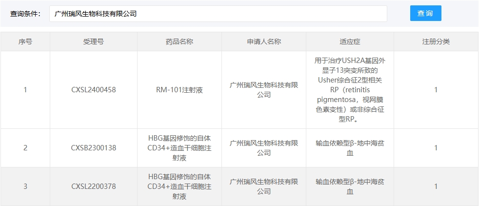 新增受理8:2025年4月15號,廣州瑞風生物科技有限公司的“HBG基因修飾的自體CD34+造血干細胞注射液”的臨床試驗申請獲受理(受理號:CXSB2500048)。適應癥:輸血依賴型β-地中海貧血。