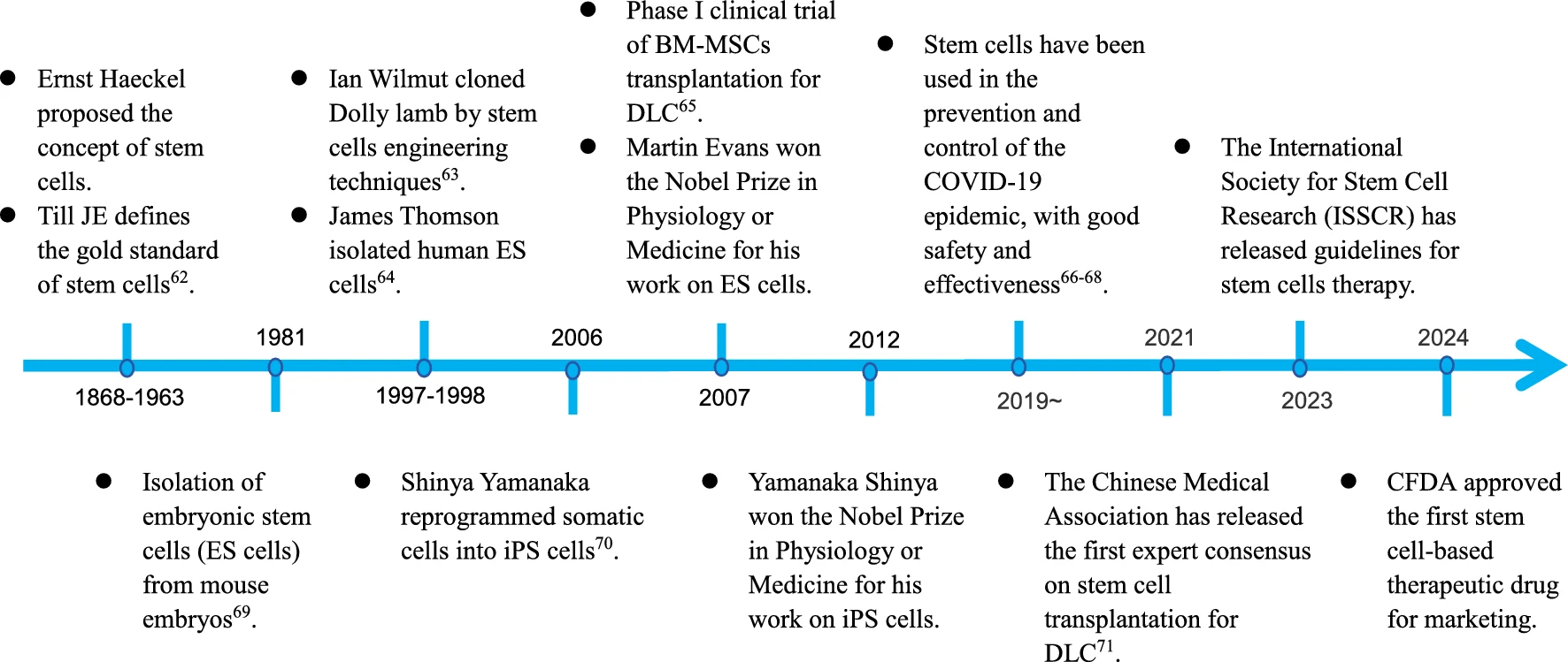 圖1:干細胞發展中的里程碑事件和相關關鍵點