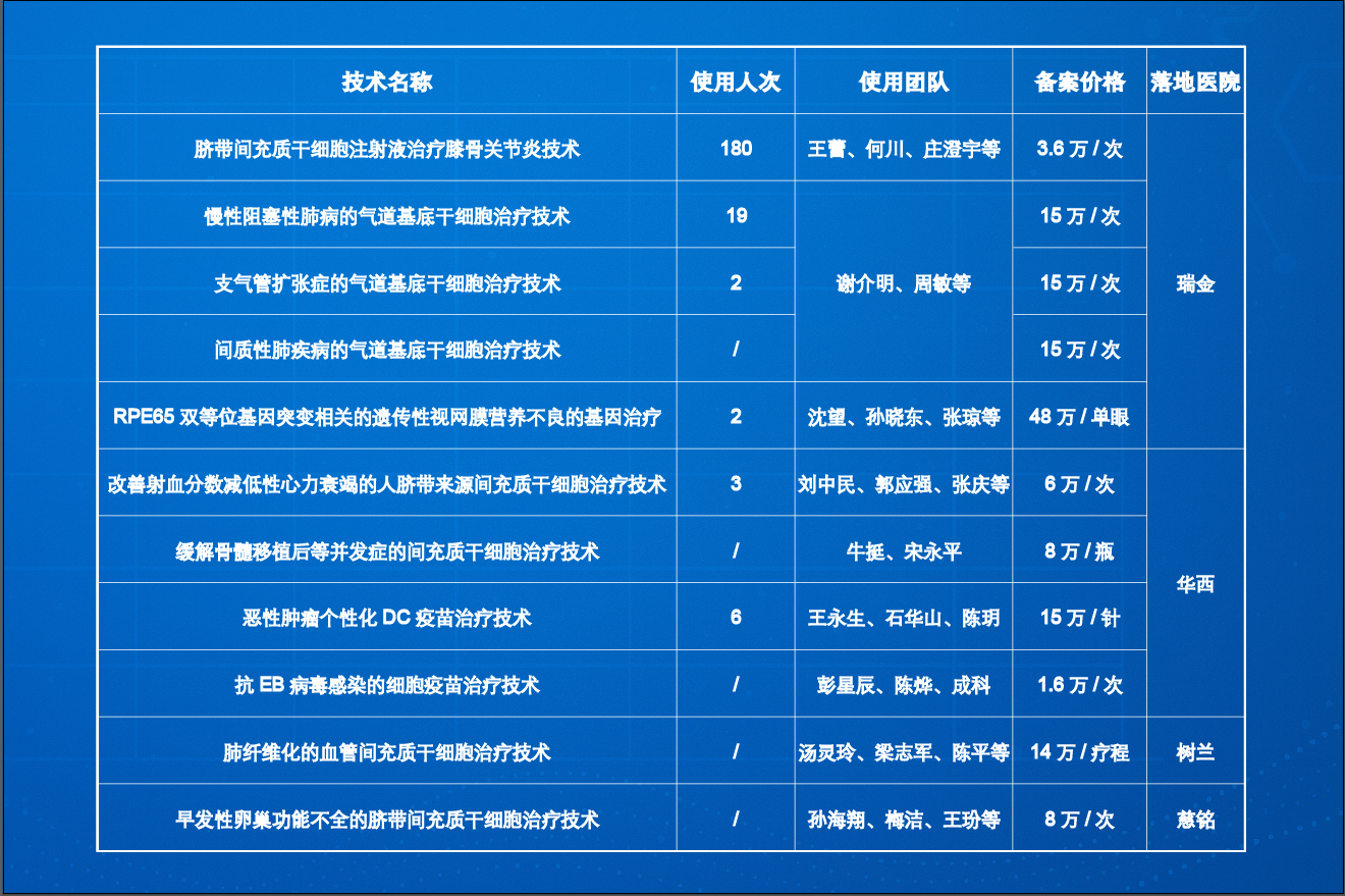- 膝骨關(guān)節(jié)炎的臍帶MSC注射液,在瑞金醫(yī)院已服務(wù)180人次(3.6萬/次);