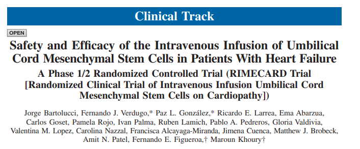 2017年發(fā)表的一項靜脈輸注臍帶間充質(zhì)干細(xì)胞(UC-MSC)治療心臟病的隨機(jī)臨床試驗中,心力衰竭和射血分?jǐn)?shù)降低的患者被隨機(jī)分為兩組,每組n=15:靜脈輸注同種異體UC-MSCs (1×106細(xì)胞/kg)或安慰劑。UC-MSCs治療的患者未出現(xiàn)與細(xì)胞注射相關(guān)的不良事件。