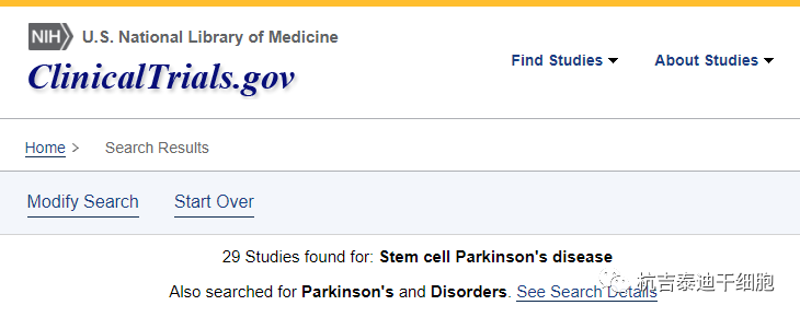 截止2023年4月,在美國國立衛生研究院的最大臨床試驗注冊庫clinicaltrials.gov網站上注冊的有關干細胞治療帕金森病的臨床研究項目有29項。