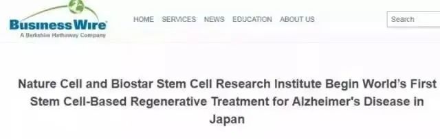2018年3月初,韓國生物技術公司Nature Cell宣布,該公司旗下干細胞研究機構Biostar在美國已經開始開展一項名為“ASTROSTEM”的干細胞藥物的I/II期臨床試驗,通過靜脈注射相應干細胞10次(1億細胞/次)的方式來治療阿爾茨海默病,而這也是在干細胞療法開發上的里程碑事件。