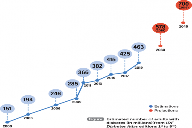 - 據(jù)估計,到2045年,將有7億成年人患有糖尿病