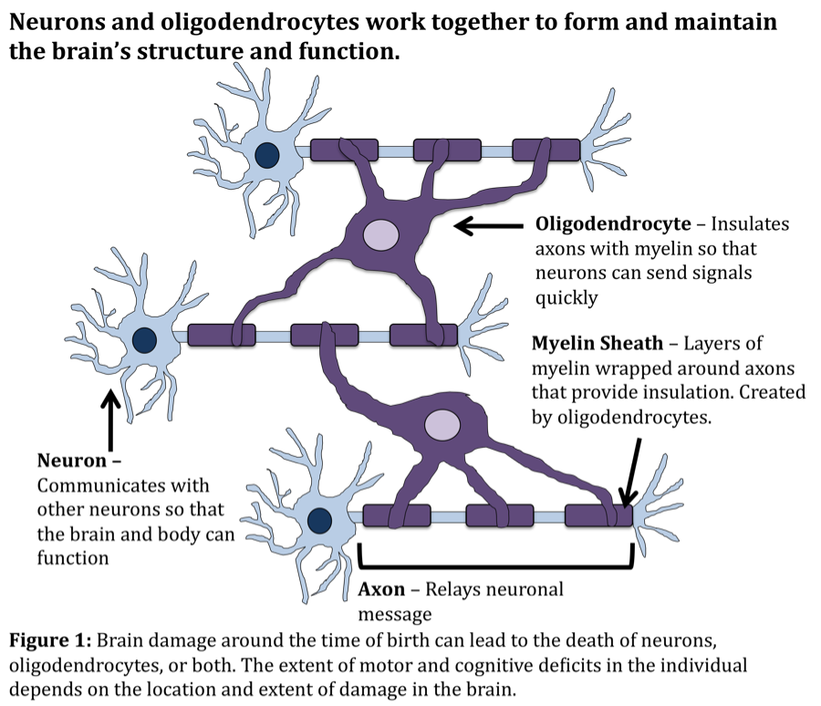 當大腦在敏感的圍產期發生損傷時,常駐的腦細胞就無法促進大腦的正常生長和發育。神經元少突膠質細胞死亡和/或無法成熟,連接各個大腦區域的白質束受損。重要的是,連接大腦運動區和脊髓并幫助控制運動的皮質脊髓束(CST)經常受到損傷。如果沒有功能性CST連接,就會出現運動缺陷。