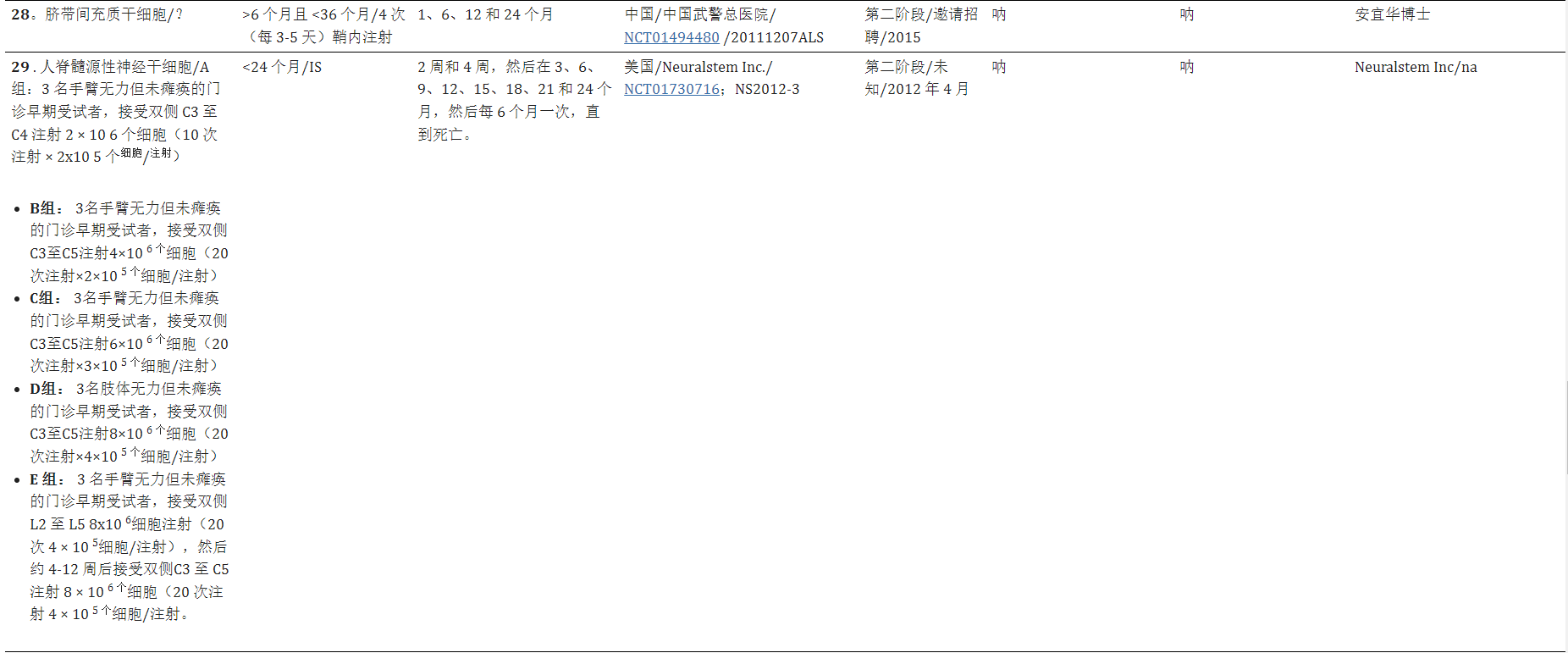 主要參考資料:Forostyak S, Sykova E. Neuroprotective Potential of Cell-Based Therapies in ALS: From Bench to Bedside. Front Neurosci. 2017 Oct 24;11:591. doi: 10.3389/fnins.2017.00591. PMID: 29114200; PMCID: PMC5660803.
