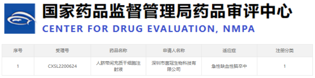 深圳市茵冠生物科技有限公司的人臍帶間充質干細胞注射液,已于2023年3月21日獲得國家藥監局藥品審評中心(CDE)的臨床試驗許可。